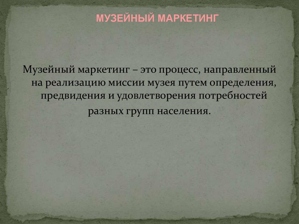 МУЗЕЙНЫЙ МАРКЕТИНГМузейный маркетинг – это процесс, направленный