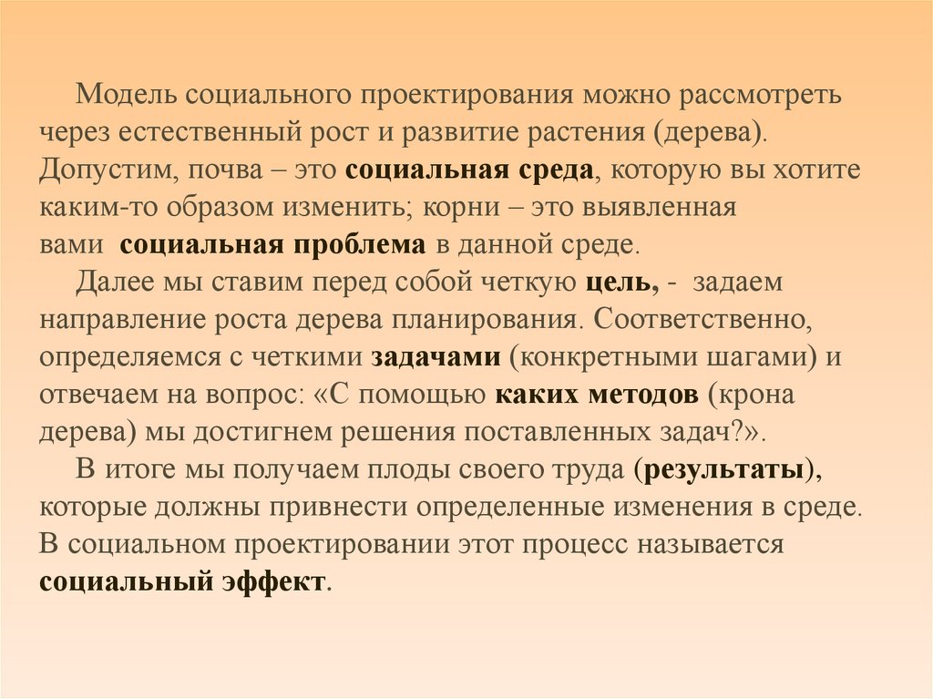Модель социального проектирования можно рассмотретьчерез естественный рост и развитие растения (дерева).