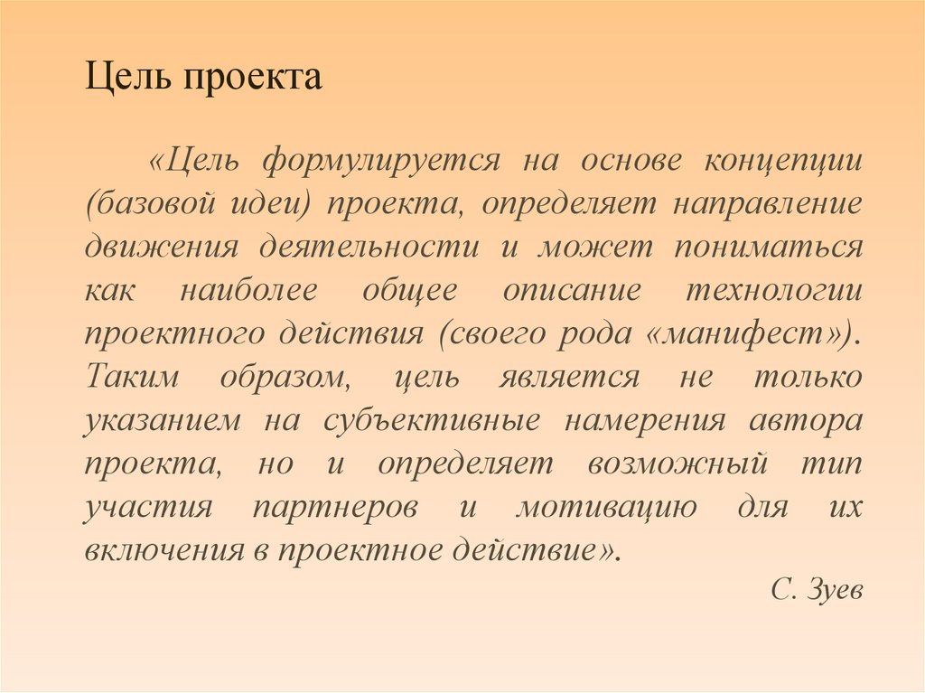 Цель проекта«Цель формулируется на основе концепции