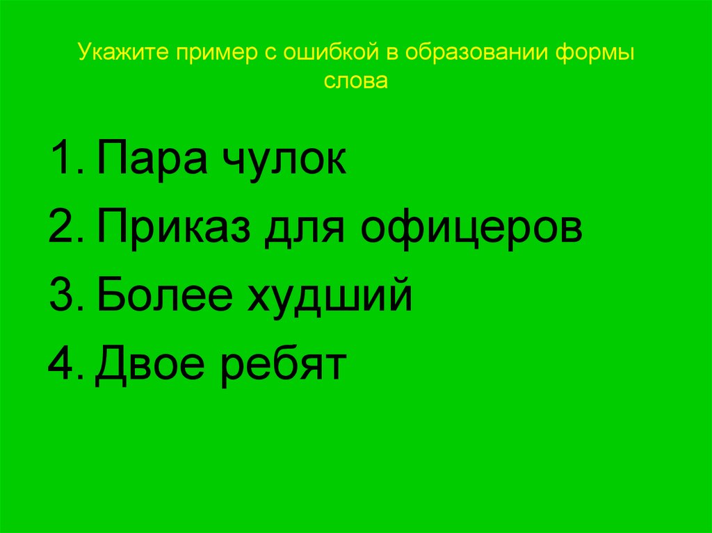 11. Укажите пример с ошибкой в образовании формы слова