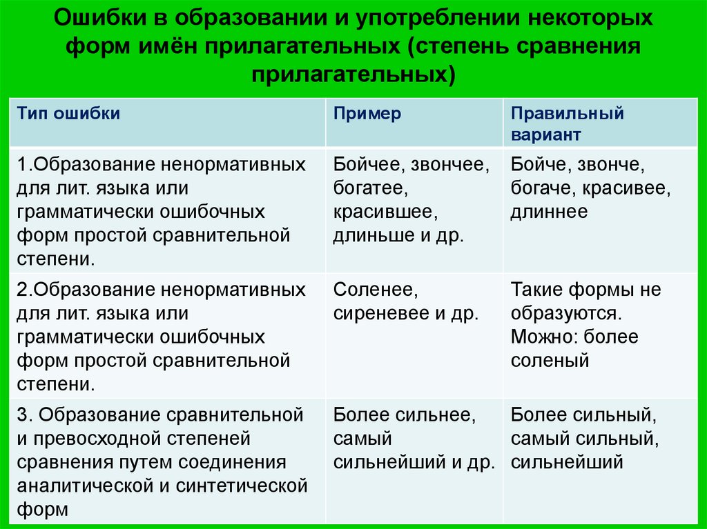 Ошибки в образовании и употреблении некоторыхформ имён прилагательных (степень сравнения