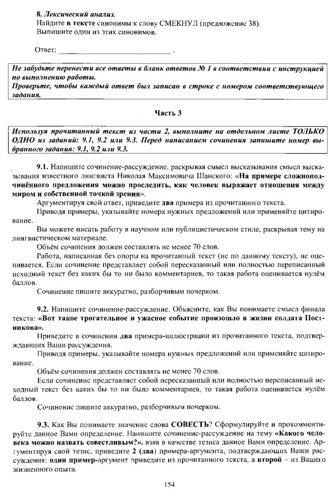 Основной государственный экзамен, 2024 г. Русский язык, 9 класс