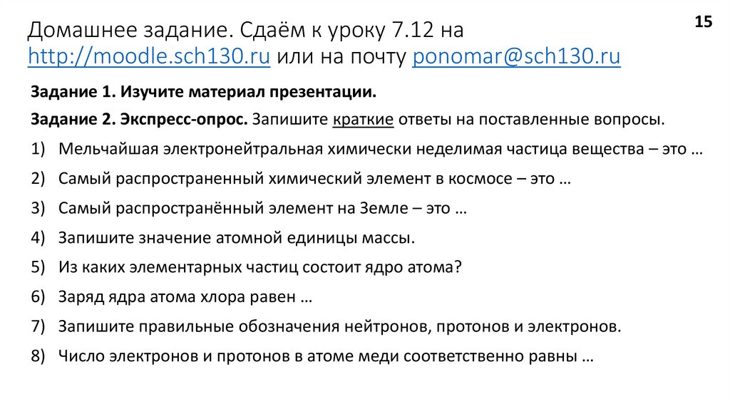 Домашнее задание. Сдаём к уроку 7.12 наhttp://moodle.sch130.ru или на почту ponomar@sch130.ru
