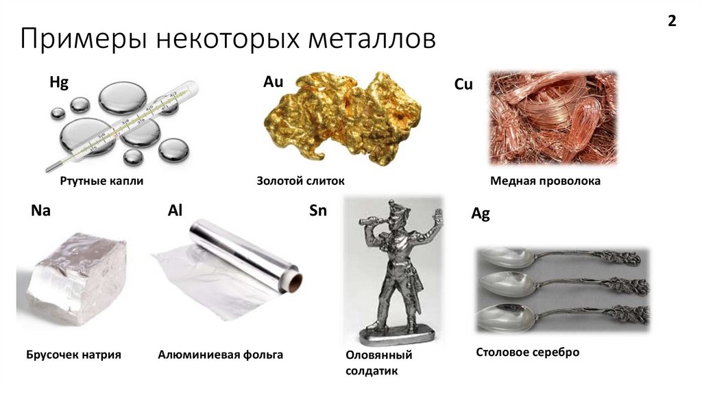 2Примеры некоторых металлов