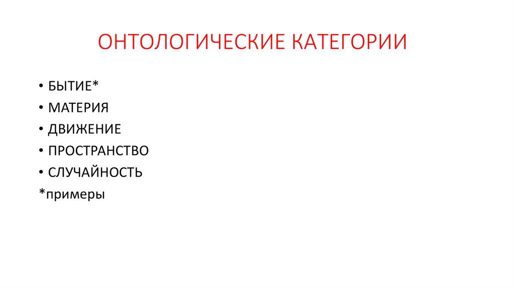 ОНТОЛОГИЧЕСКИЕ КАТЕГОРИИ• БЫТИЕ*