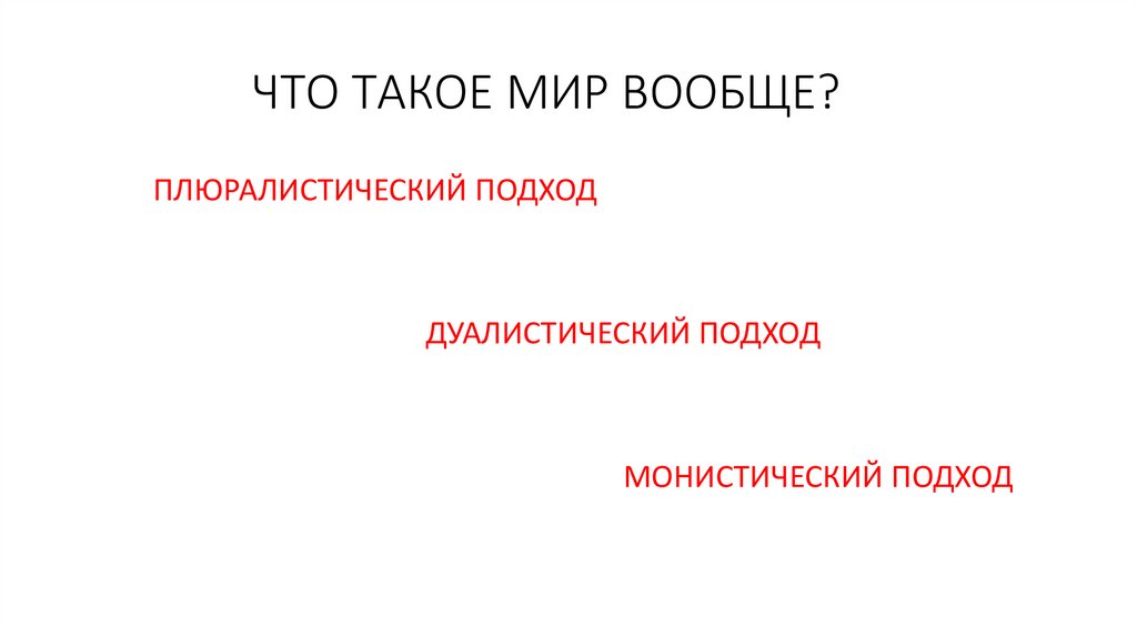 ЧТО ТАКОЕ МИР ВООБЩЕ?ПЛЮРАЛИСТИЧЕСКИЙ ПОДХОД