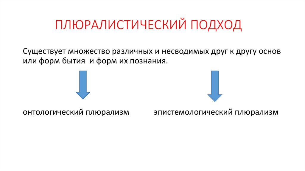 ПЛЮРАЛИСТИЧЕСКИЙ ПОДХОДСуществует множество различных и несводимых друг к другу основ