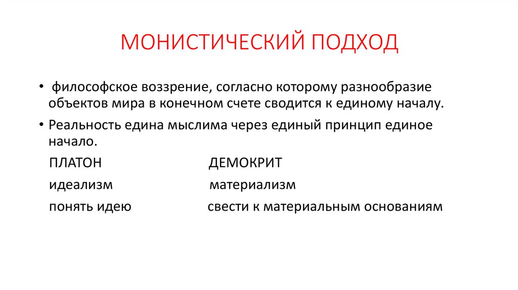 МОНИСТИЧЕСКИЙ ПОДХОД