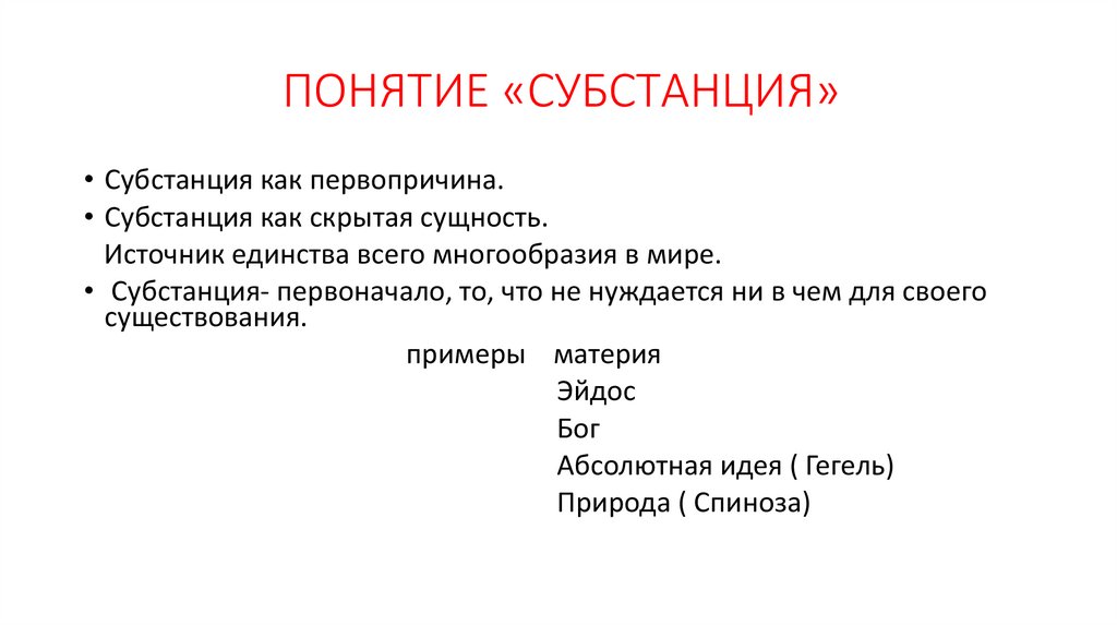 ПОНЯТИЕ «СУБСТАНЦИЯ»• Субстанция как первопричина.