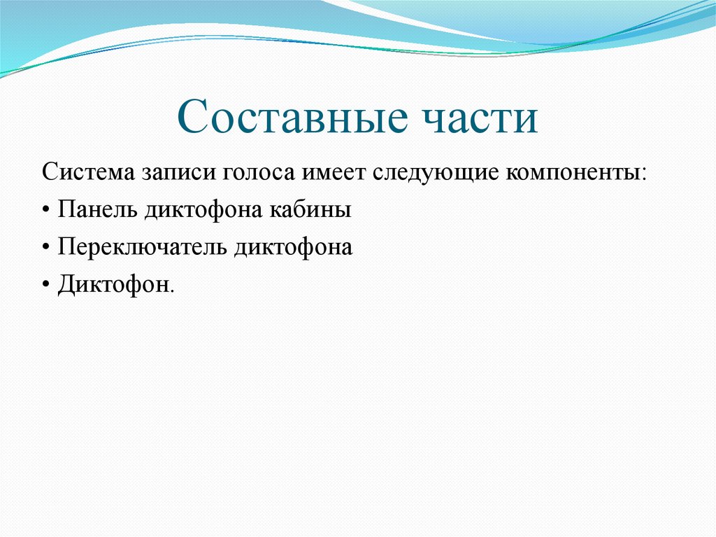 Составные частиСистема записи голоса имеет следующие компоненты: