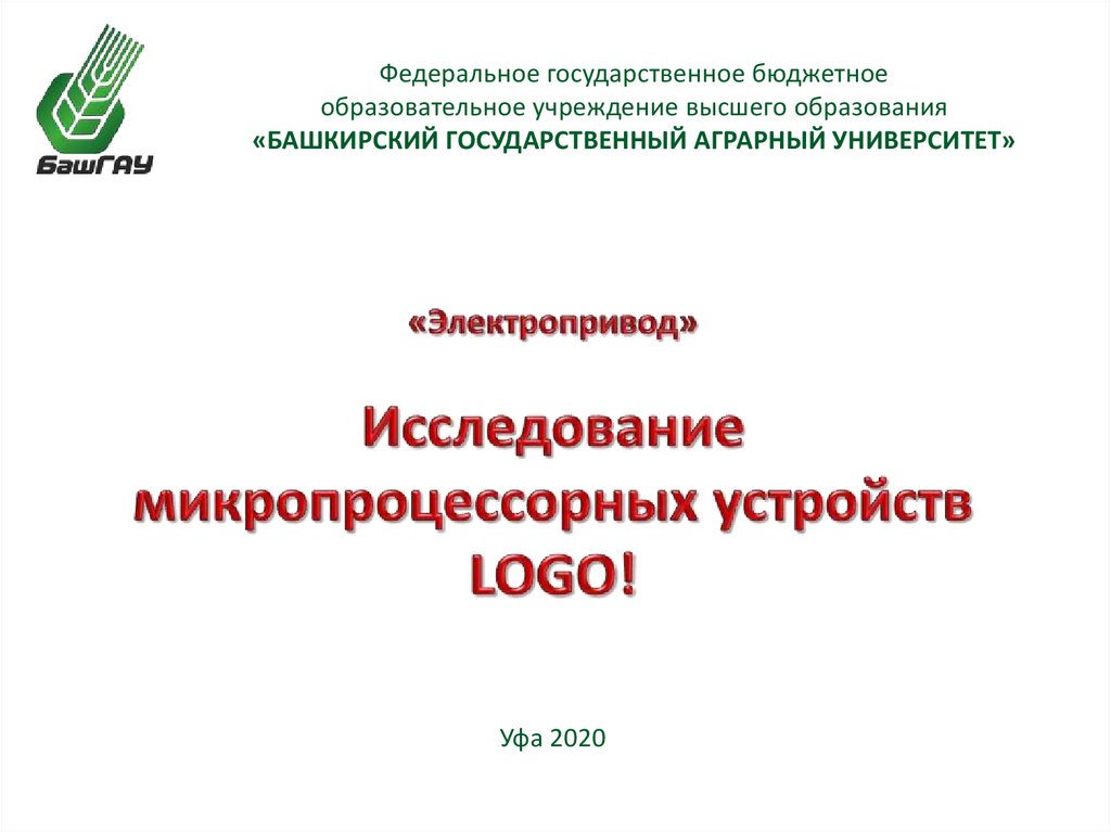 «БАШКИРСКИЙ ГОСУДАРСТВЕННЫЙ АГРАРНЫЙ УНИВЕРСИТЕТ»