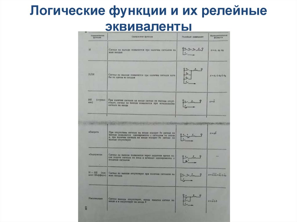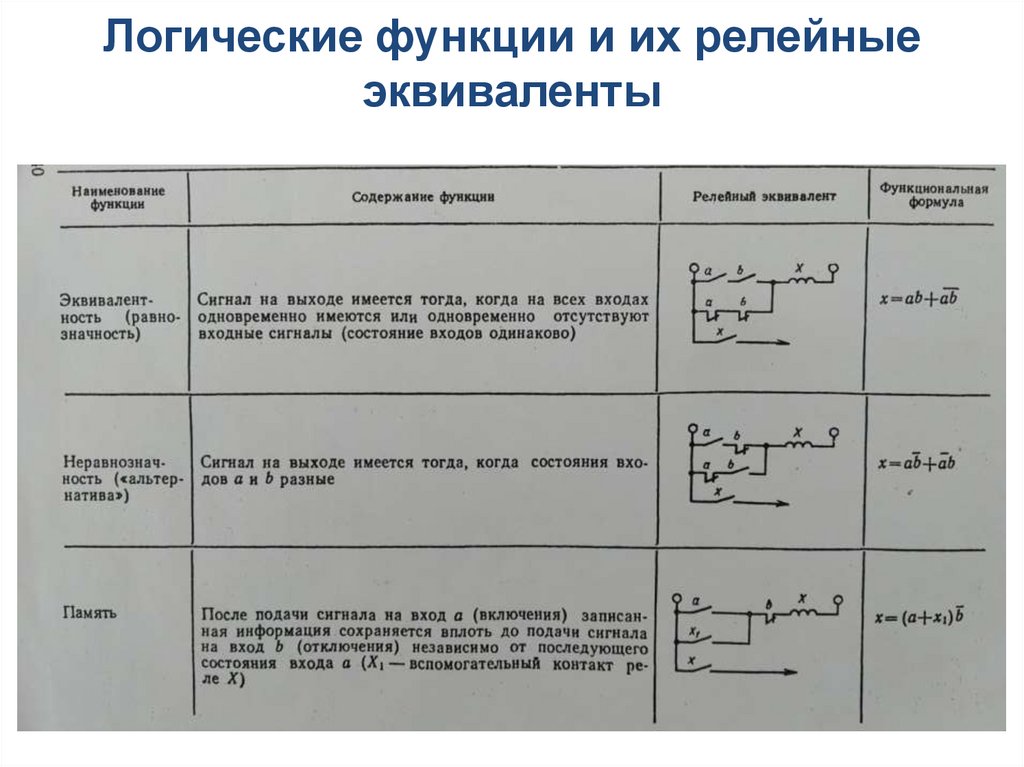 Логические функции и их релейные