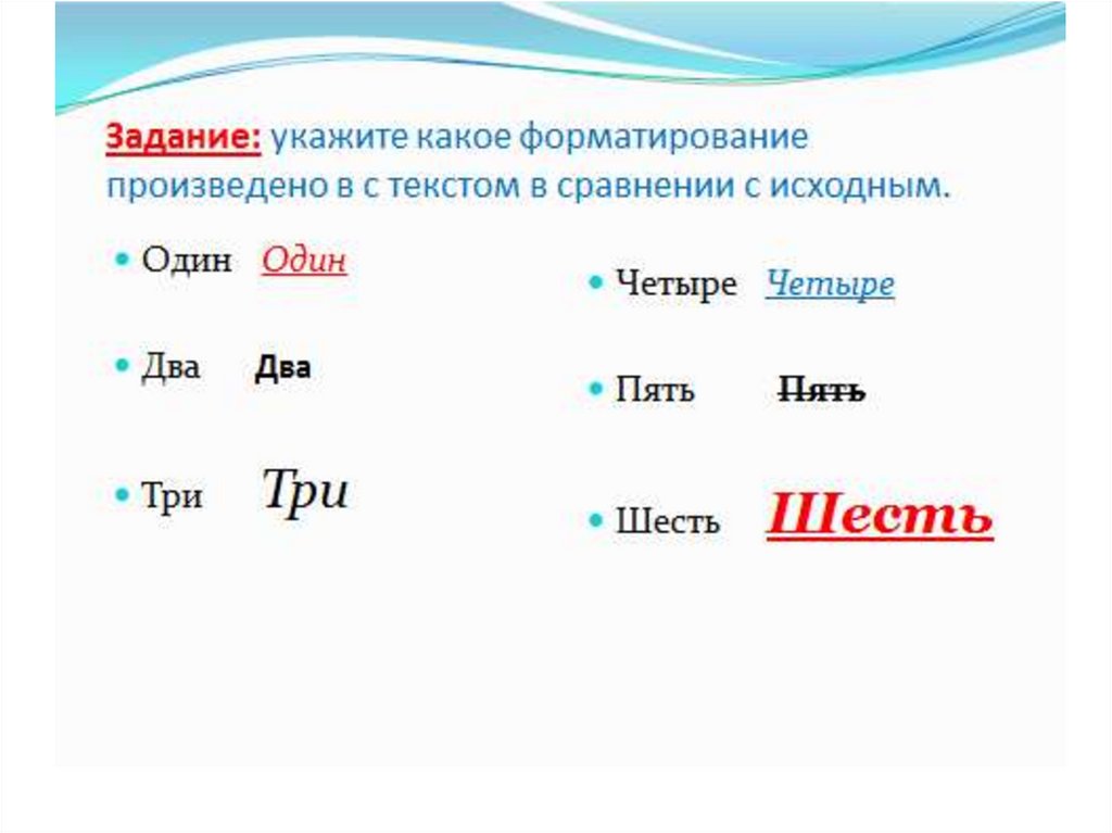 Форматирование текста. Задания