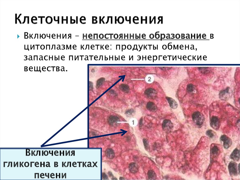 Включения – непостоянные образование вцитоплазме клетке: продукты обмена,