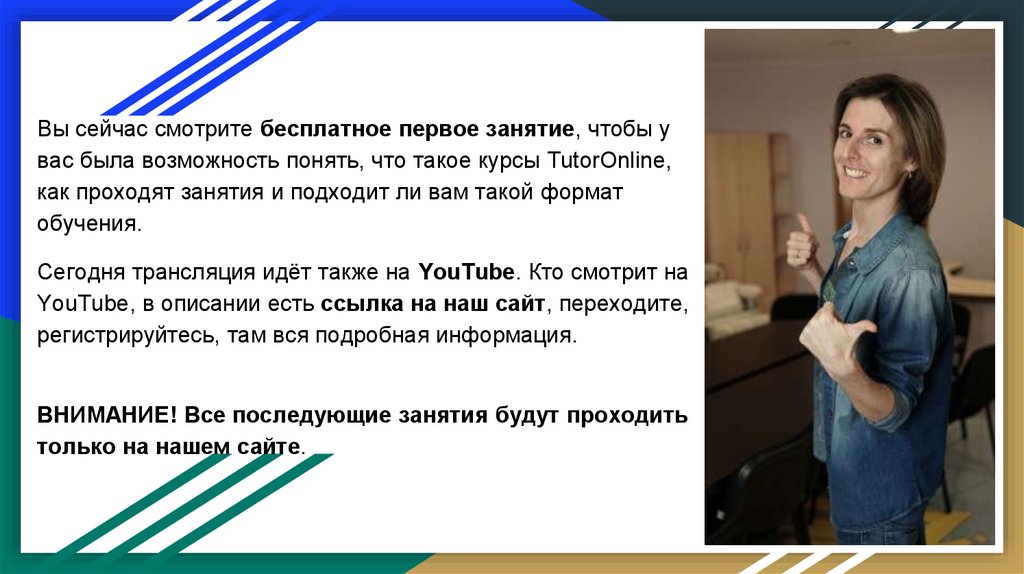 Вы сейчас смотрите бесплатное первое занятие, чтобы увас была возможность понять, что такое курсы TutorOnline,