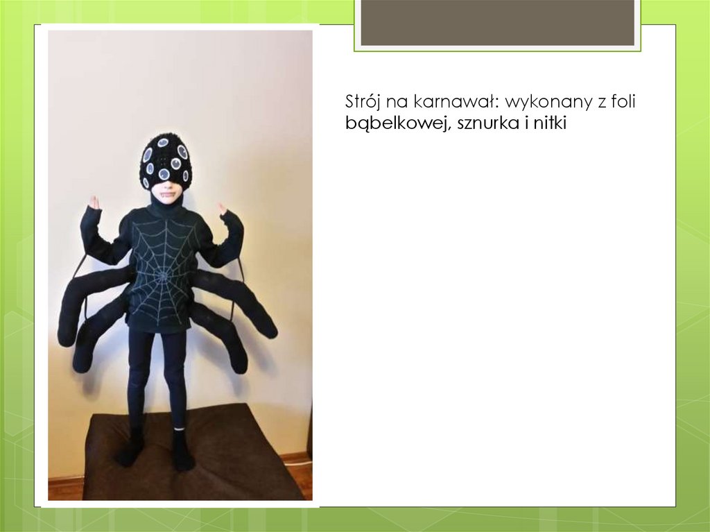 Strój na karnawał: wykonany z folibąbelkowej, sznurka i nitki