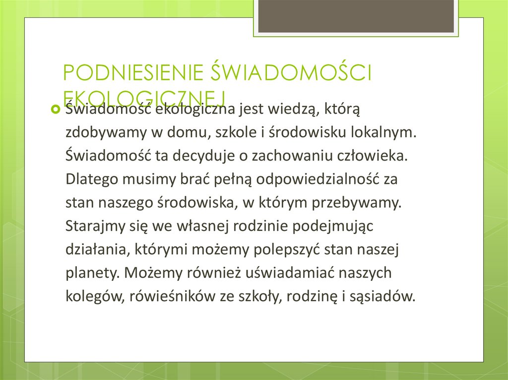 PODNIESIENIE ŚWIADOMOŚCIEKOLOGICZNEJ