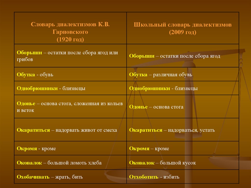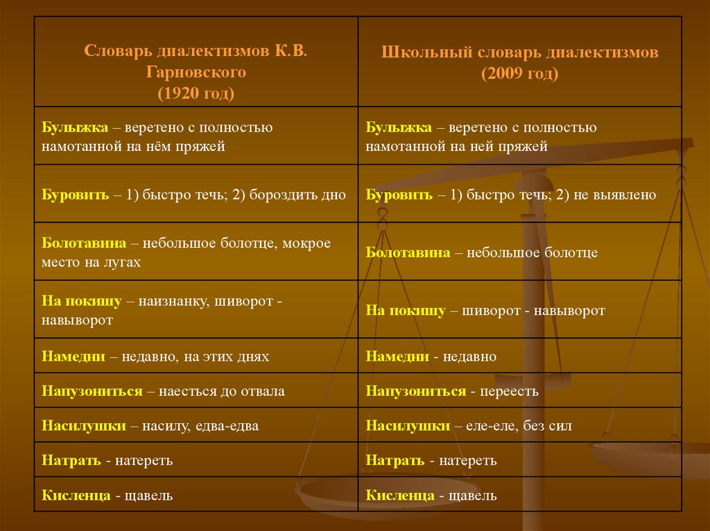 школьным словарём диалектов и результатами