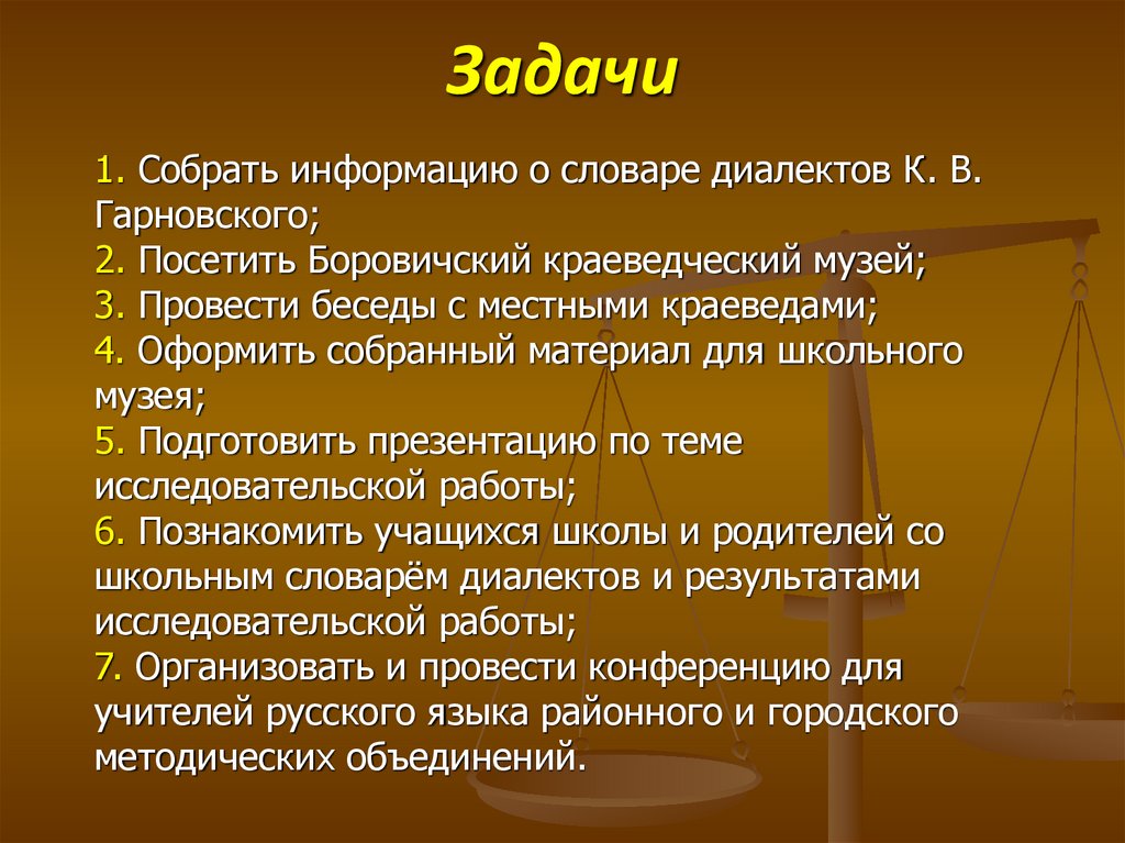 Задачи1. Собрать информацию о словаре диалектов К. В.