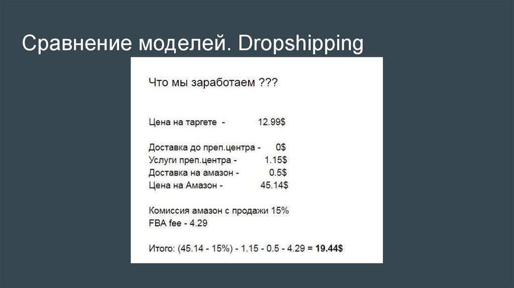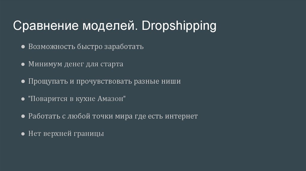Сравнение моделей. Dropshipping● Возможность быстро заработать