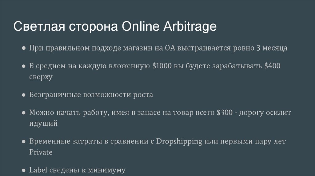 Светлая сторона Online Arbitrage● При правильном подходе магазин на ОА выстраивается ровно 3 месяца