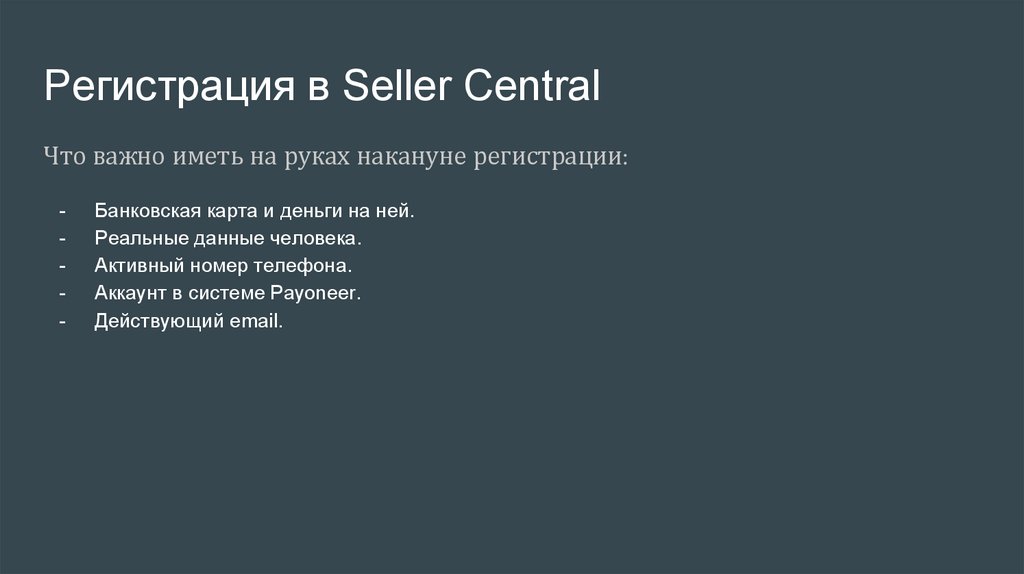 Регистрация в Seller CentralЧто важно иметь на руках накануне регистрации: