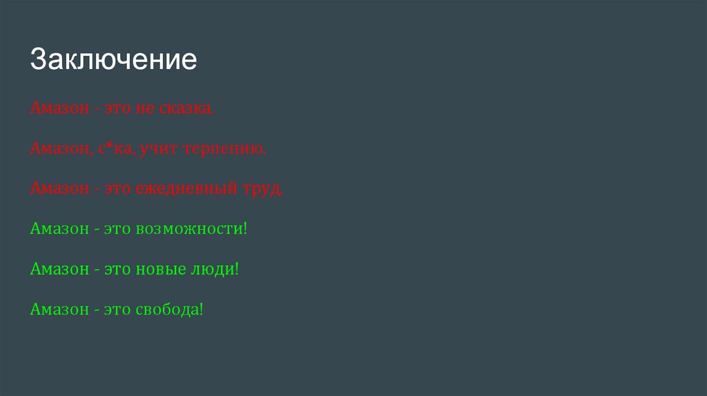 ЗаключениеАмазон - это не сказка.