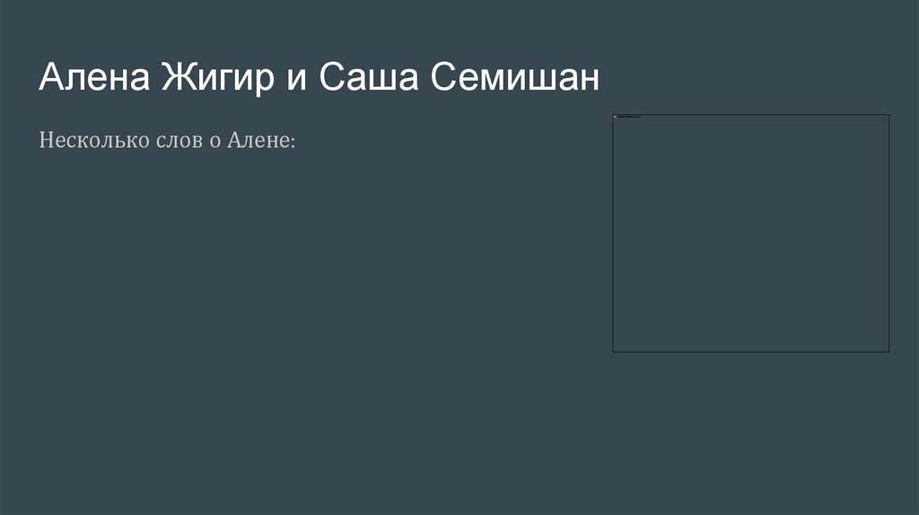 Алена Жигир и Саша СемишанНесколько слов о Алене: