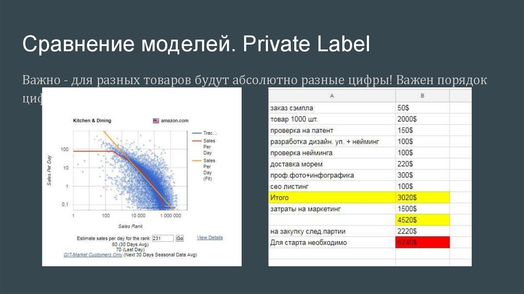 Сравнение моделей. Private LabelВажно - для разных товаров будут абсолютно разные цифры! Важен порядок