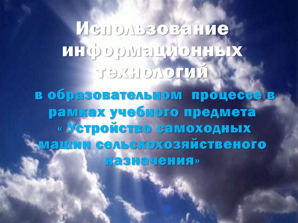 Использование информационных технологий в учебном предмете «Устройство самоходных машин сельхоз назначения»
