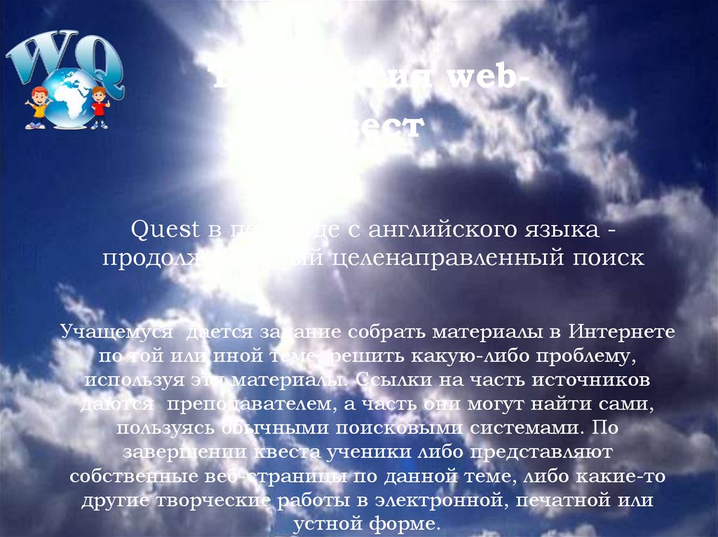 Технология webквестQuest в переводе с английского языка продолжительный целенаправленный поиск