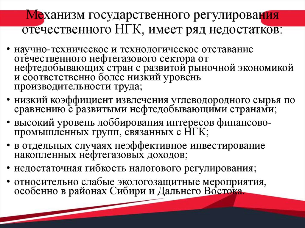 Механизм государственного регулированияотечественного НГК, имеет ряд недостатков: