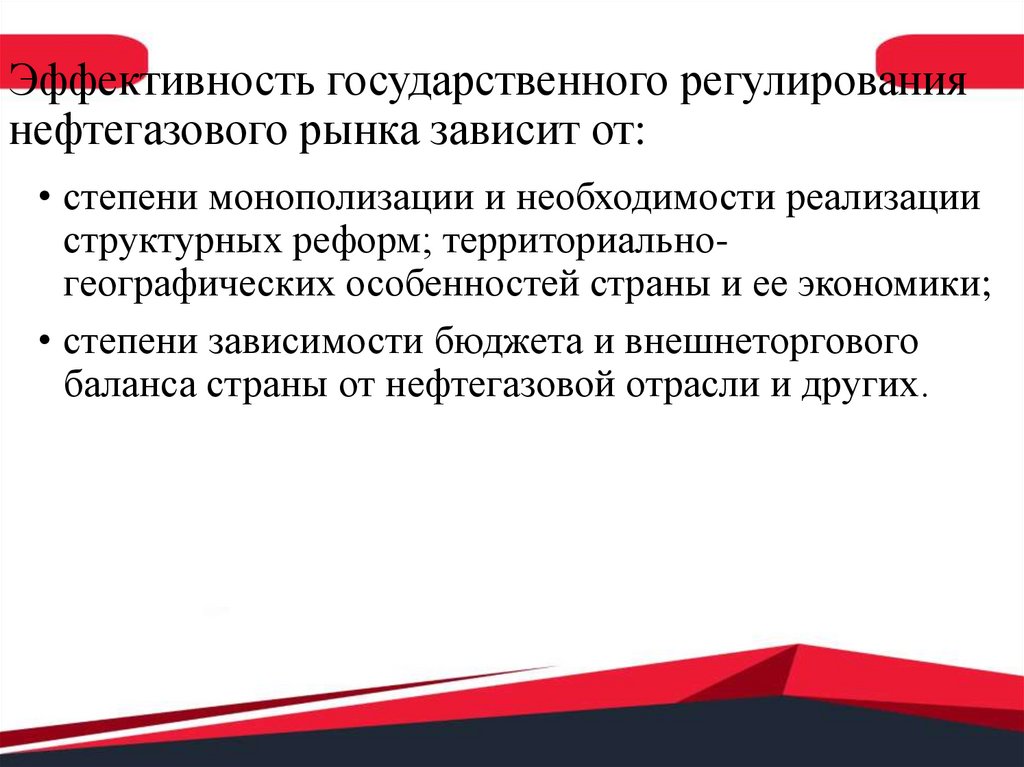 Эффективность государственного регулированиянефтегазового рынка зависит от: