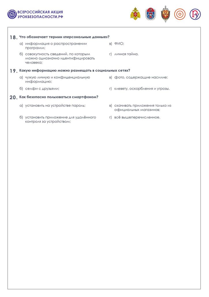 Интернет-безопасность. Тест