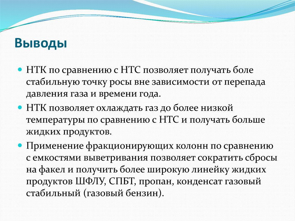 ВыводыНТК по сравнению с НТС позволяет получать боле