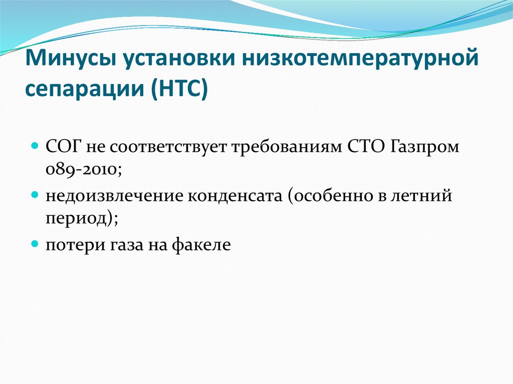 Минусы установки низкотемпературнойсепарации (НТС)