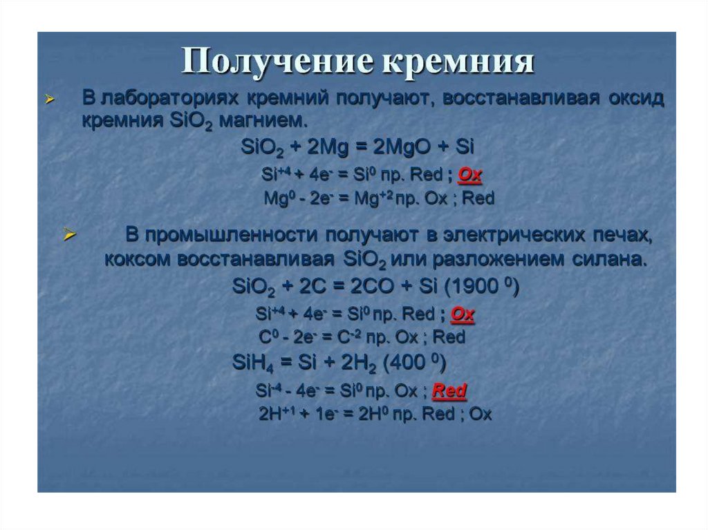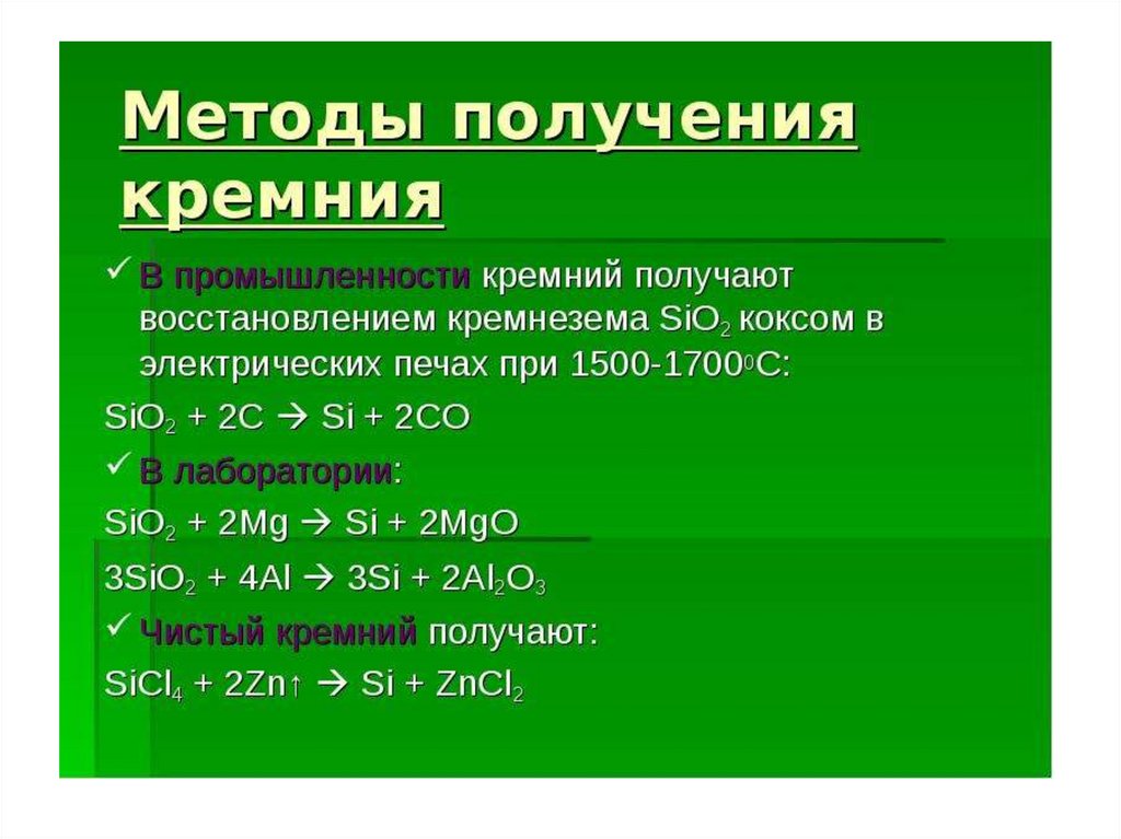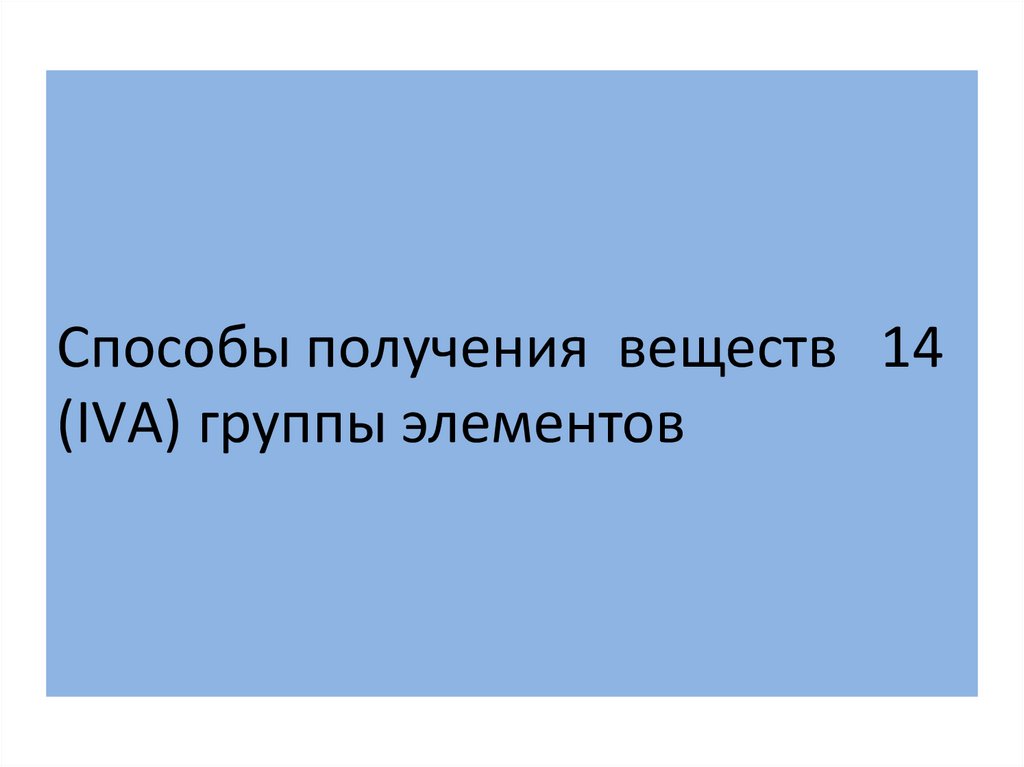 Способы получения веществ 14 (IVА) группы элементов