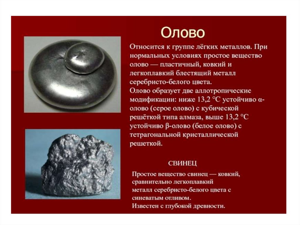 О́лово — элемент 14-й группы периодической системы химических элементов