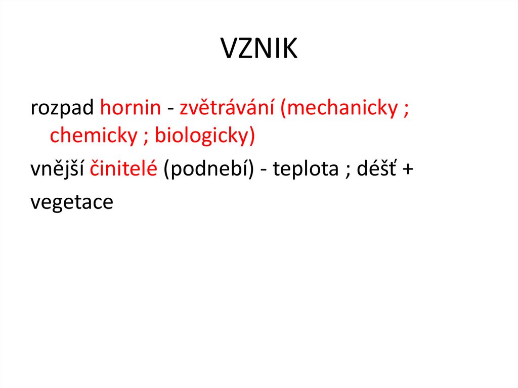 VZNIKrozpad hornin - zvětrávání (mechanicky ;