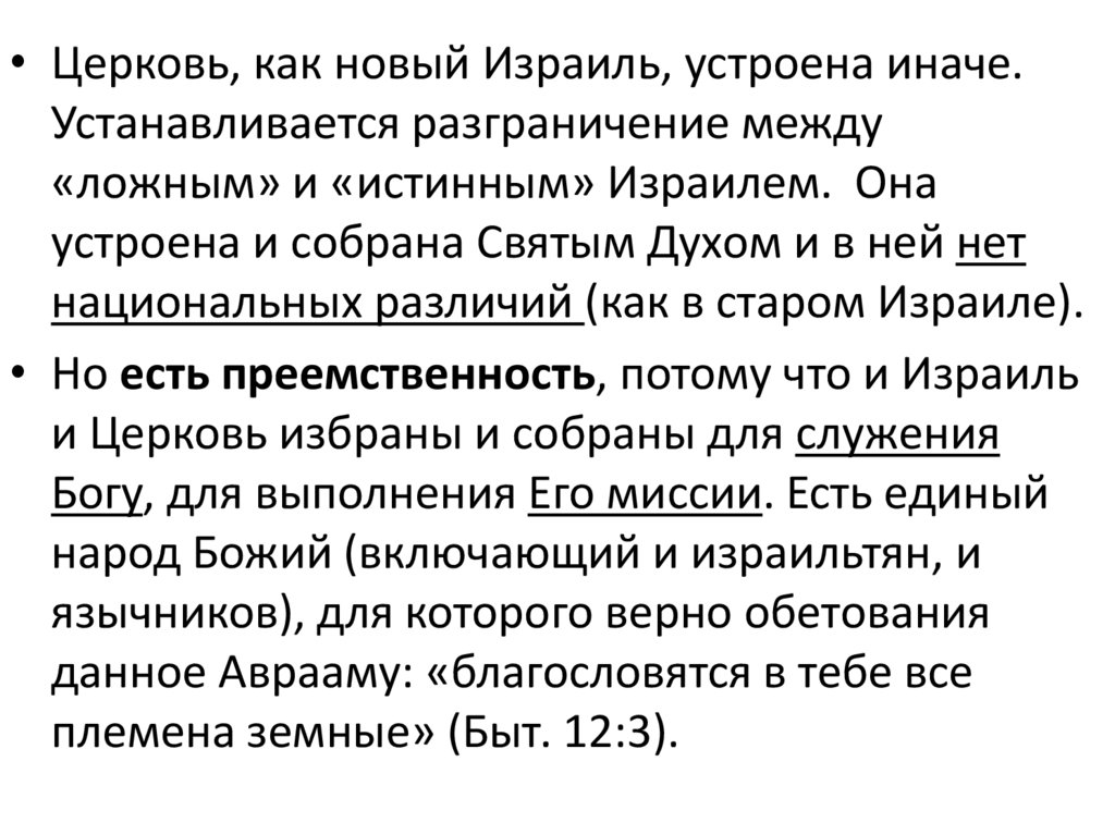 • Церковь, как новый Израиль, устроена иначе.Устанавливается разграничение между
