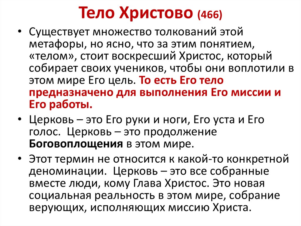 Тело Христово (466)• Существует множество толкований этой