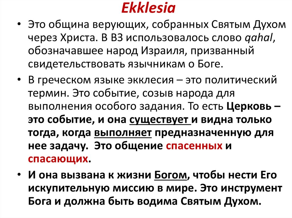 Еkklesia• Это община верующих, собранных Святым Духом