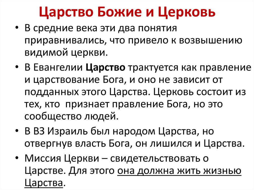 Царство Божие и Церковь• В средние века эти два понятия