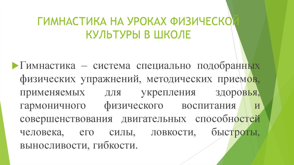 ГИМНАСТИКА НА УРОКАХ ФИЗИЧЕСКОЙКУЛЬТУРЫ В ШКОЛЕ