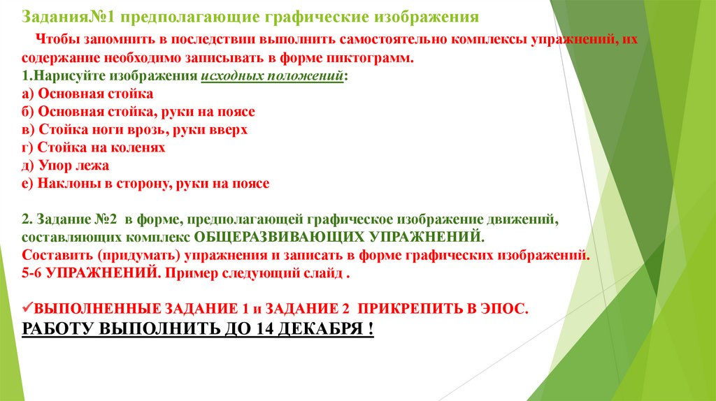 Задания№1 предполагающие графические изображенияЧтобы запомнить в последствии выполнить самостоятельно комплексы упражнений, их