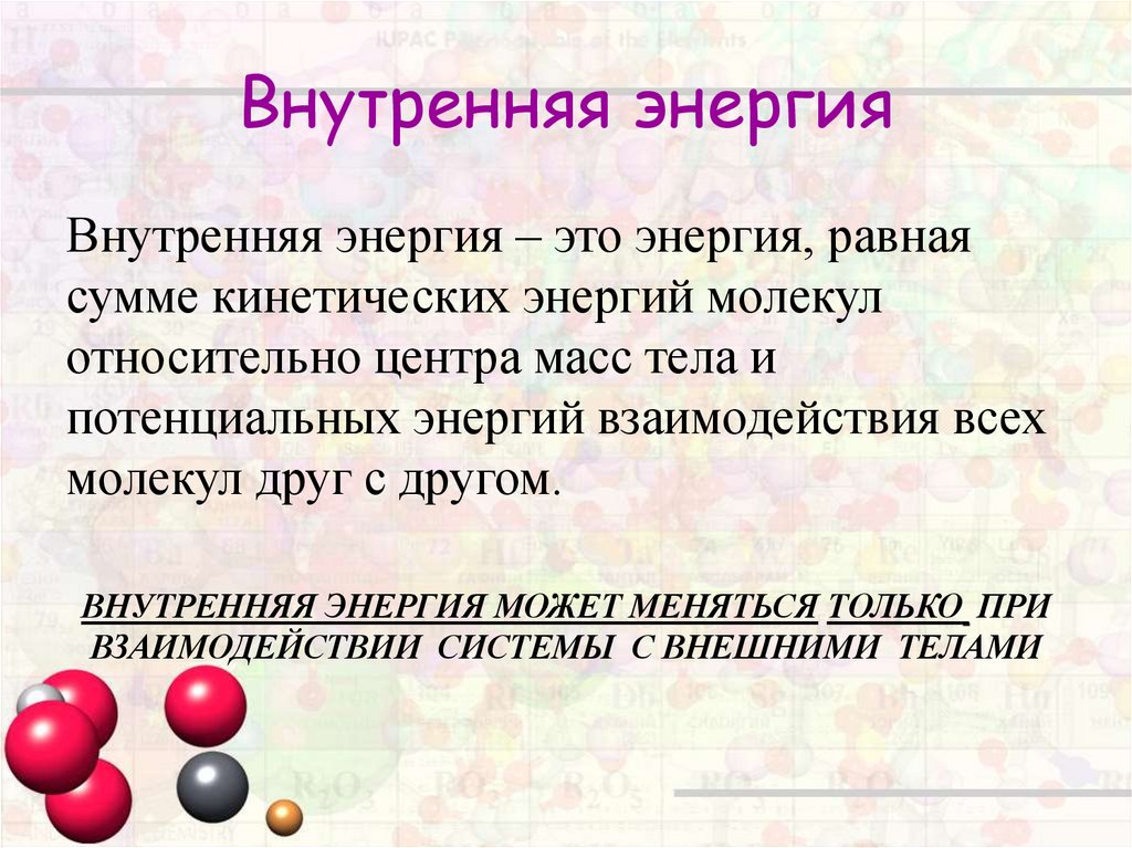 Внутренняя энергия. Термодинамика