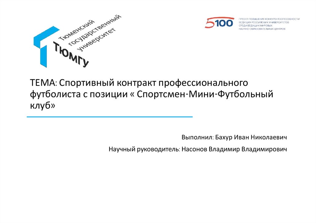 ТЕМА: Спортивный контракт профессиональногофутболиста с позиции « Спортсмен-Мини-Футбольный