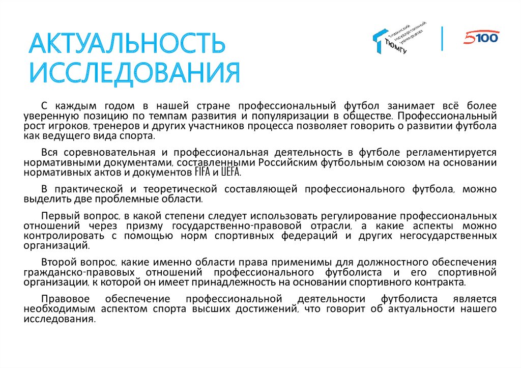 Правовое обеспечение профессиональной деятельности футболиста является