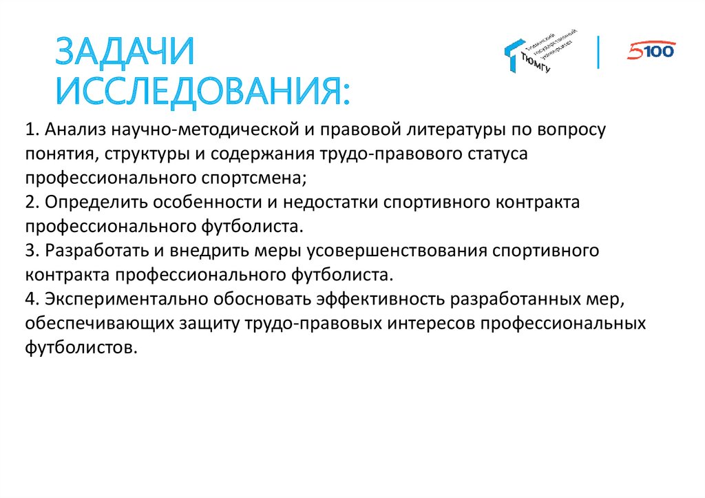 ЗАДАЧИИССЛЕДОВАНИЯ: