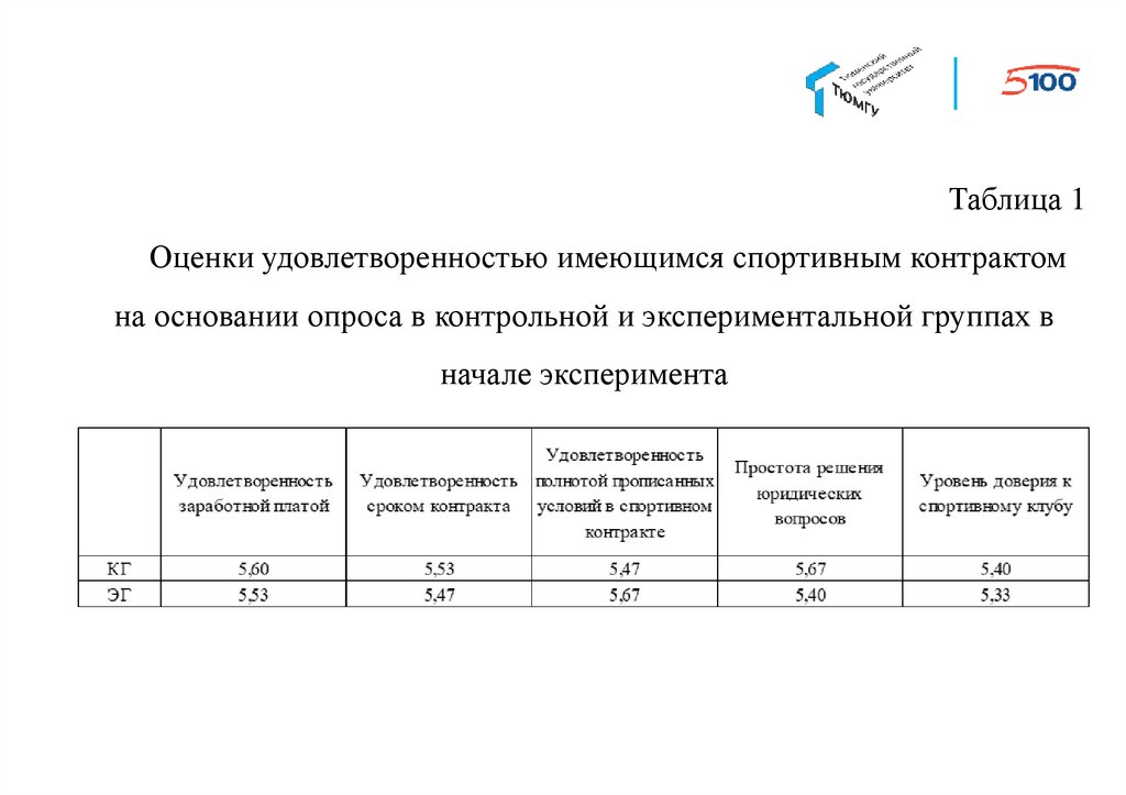 Таблица 1Оценки удовлетворенностью имеющимся спортивным контрактом